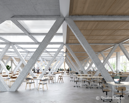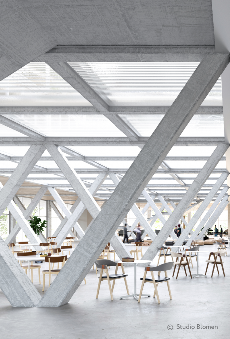 Die Regelgeschosse bieten vielseitige Möglichkeiten und können auch für besondere Nutzungen vorgesehen werden. Die Raumhöhen können z. B. kleinere vertikal funktionierende Produktionseinheiten aufnehmen und Planungs- und Produktionsprozesse kombinieren. Ebenso sind Konzepte für Schulungs- und Klassenräume oder Research-Einheiten umsetzbar.