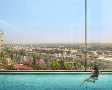 Das öffentlich zugängliche Schwimm- und Wellnessbad im Dach bietet eine spektakuläre Aussicht über Berlins Metropolregion. Die angenehmen Wassertemperaturen werden übrigens über die Abwärme des benachbarten Rechenzentrums nachhaltig generiert.