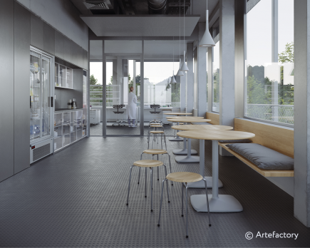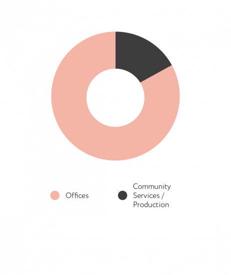 Das Erdgeschoss ermöglicht die Realisierung von Produktionsflächen, aber auch ein Experience Center oder Ausstellungsflächen sind hier denkbar. Die vier Regelgeschosse können ganz nach den Wünschen der künftigen Mieter flexible Officelösungen aufnehmen.