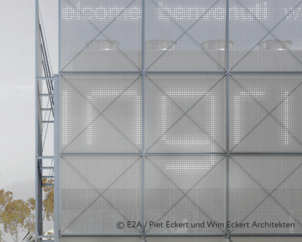 The façade of building in.10, in.grid’s welcome centre, has been designed as a media façade and can be used to display information, advertising or art.