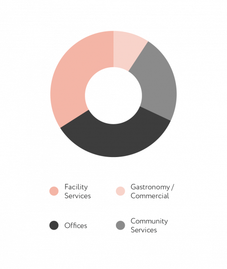 Building in.10 not only includes space for offices but also for shops, cafés, bars and restaurants. This means that it is suitable for a wide range of potential tenants, e.g. service provider industries, technology companies, start-ups, retail, food & beverage units, etc.